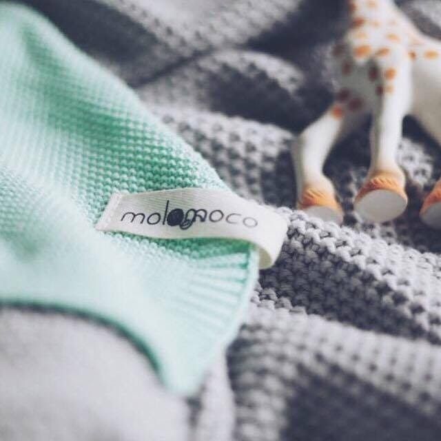 Molomocos idé är stickade produkter för barn. Filtar, snuttefiltar, spjälsängskydd och kuddar. De använder enbart tåligt certifierat garn i en utsökt kombination med fin design.