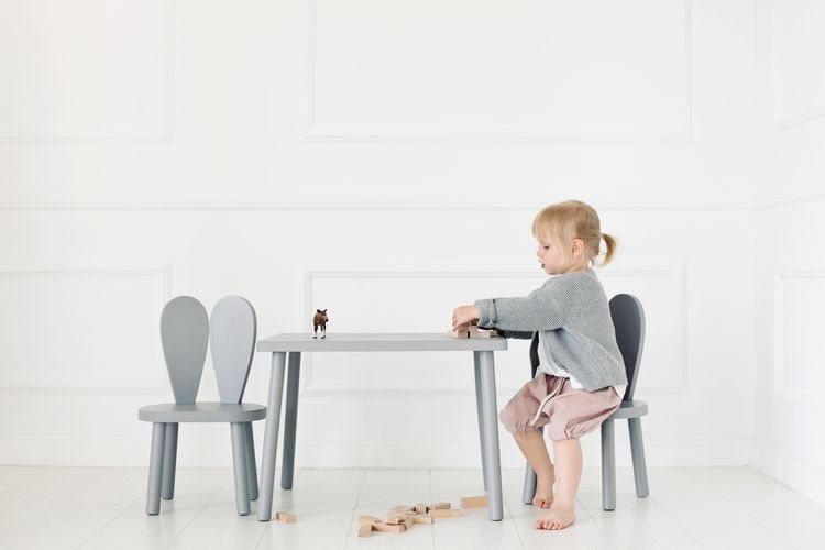 Vi på Babylove har lösningen på detta, med ett vackert möbelset med stol och bord speciellet anpassade för barn. Dessa möbler är både tåliga och fina på samma gång, och älskade av såväl barn som dess föräldrar. Stolens ryggstöd är i from av två kaninöron som dessutom är stabila och bekväma för barnet.. Bordet är rektangulärt och tillräckligt stort för att fyra barn kan sitta vid det samtidigt. Perfekta möblerna till barnrummet för barn mellan 2-6 år.