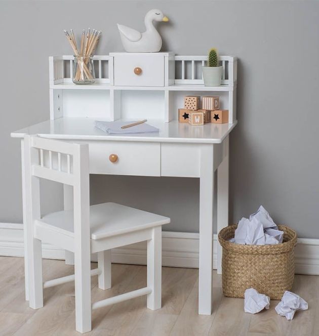 Vit/trä skrivbord till barnrummet med decor