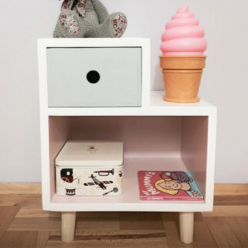 Vit sängbord till barnrummet med förvaringslåda