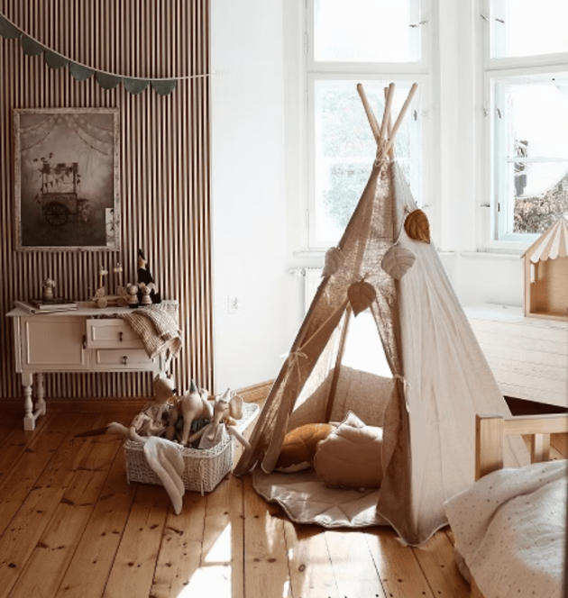En ombonad känsla är grunden i all inredning för barnrum. Börja med textilierna! En mjuk matta blir en skön plats för lek och bus. Skapa en drömsk och trygg sovplats med en vacker sänghimmel eller en lugnande sängmobil. Ett mysigt lektält blir en perfekt koja för sagostunder och hemliga äventyr, medan sköna sittpuffar & saccosäckar erbjuder en avslappnad plats för vila eller läsning.