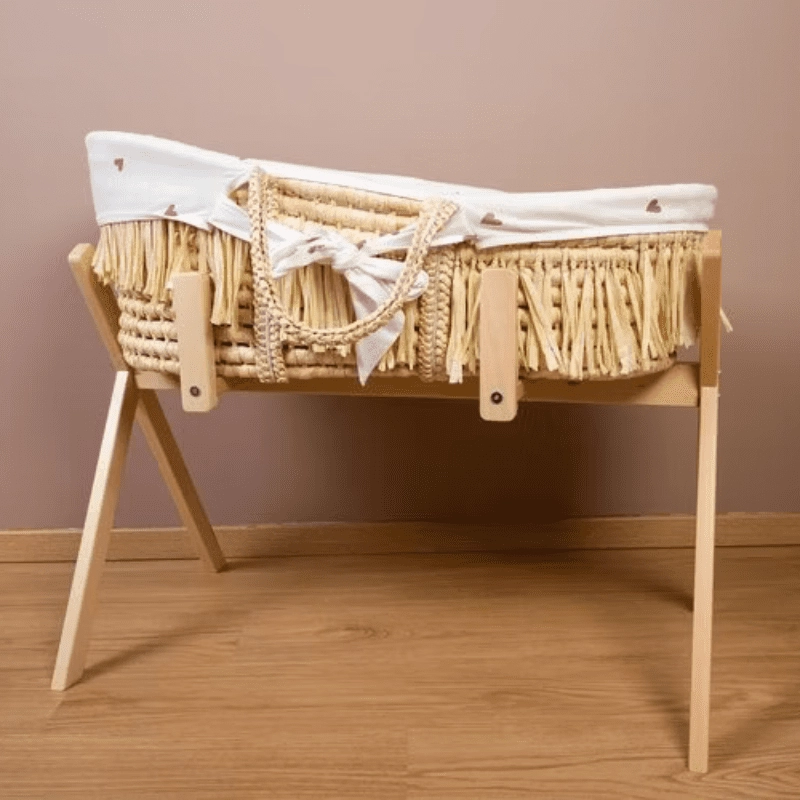 Moseskorgen fungerar både med och utan stativet som man kan köpa till separat. Välj mellan olika färger för att matcha övrig inredning i barnets rum.