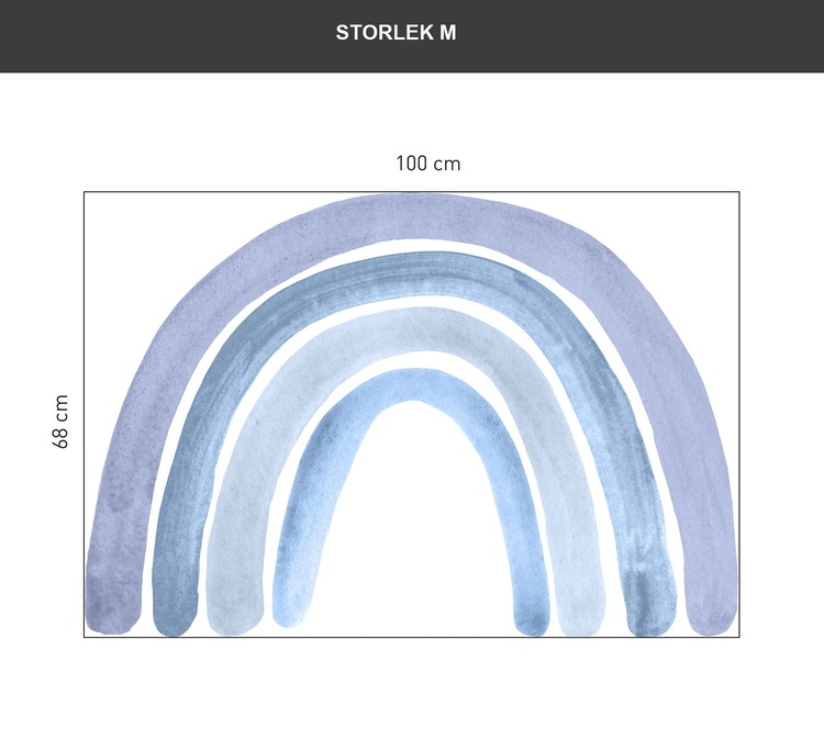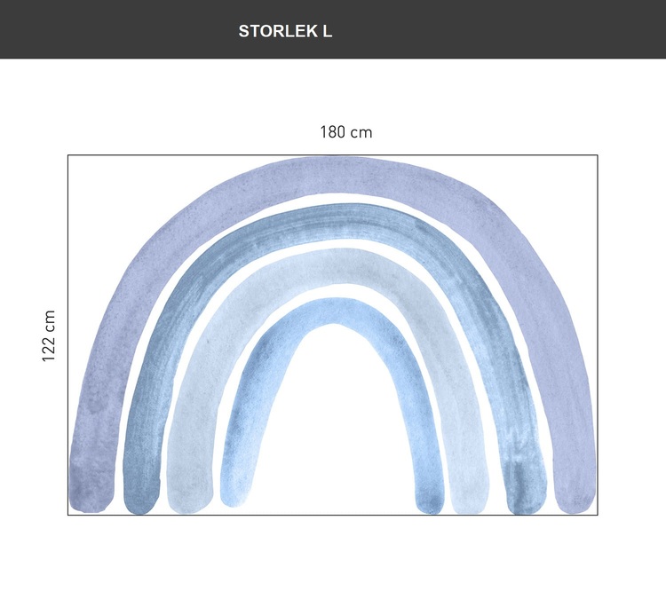 En underbar veggdekorasjon i form av en regnbue. Dette er en fantastisk måte å innrede barnerommet ditt på, da den passer både ved sengen, ved skrivebordet eller på en tom helvegg i stedet for tapet. \n \nVeggklistremerket er utformet for å se underbart ut på både lyse og mørke vegger og har en fin struktur som knapt er merkbar. Materialet er spesielt utvalgt for å være sterkt og gi en perfekt farggjengivelse. \n \nMål: Finnes i to størrelser: \n