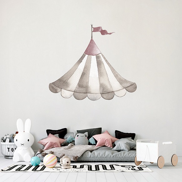 En eventyrlig samling veggklistremerker med sirkustema! \n \nMed disse kan du dekorere ditt barns rom med sirkustelt og skape masse lek! \n \nVeggklistremerker i et barnerom er en enkel måte å dekorere f.eks. ditt favorittmyskrok eller et kjedelig område ved siden av en seng eller et skrivebord. \n