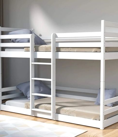 \nMadrasser inngår ikke, men finnes å kjøpe i vårt store utvalg! Vi anbefaler en skummadrass med en tykkelse på 10-12 cm for den øvre sengen og maks 8 cm for de to ekstrasengene. Hvis madrassene til ekstrasengene er tykkere enn 8 cm vil ikke ekstrasengene kunne rulles ut. \n \nSengene produseres etter standarden EN-747-1: 2012 + A1: 2015 i vår fabrikk i Europa som har de høyeste sikkerhetsstandardene for produksjon av barnesenger. og kontrollerer hvert steg fra det at tømmeret kommer inn i fabrikken til at et ferdig produkt forlater. Sengene lakkes tre ganger med økologisk, miljøvennlig og vannbasert maling som følger normen EN 71-3:2019. \n \nDette er en seng produsert og tilpasset for barn. Sengen leveres umontert og bør settes sammen i rommet den skal brukes i.