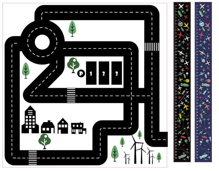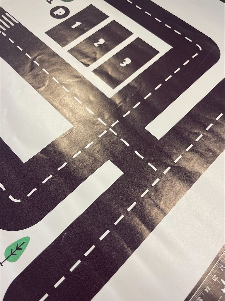 Supersmart klistremerke i form av en bilbane som passer perfekt til for eksempel Ikea Lack sidebord.