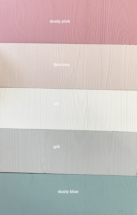 Kistan finns i sex klassiska färger ? vit, grå, dusty blue, natur, ljusrosa eller i dusty pink. Då bänken enbart görs på beställning så kan de göras i andra färger också om man så önskar. Samtliga färger som använts är klassade som barnsäkra, vilket skapar trygghet.