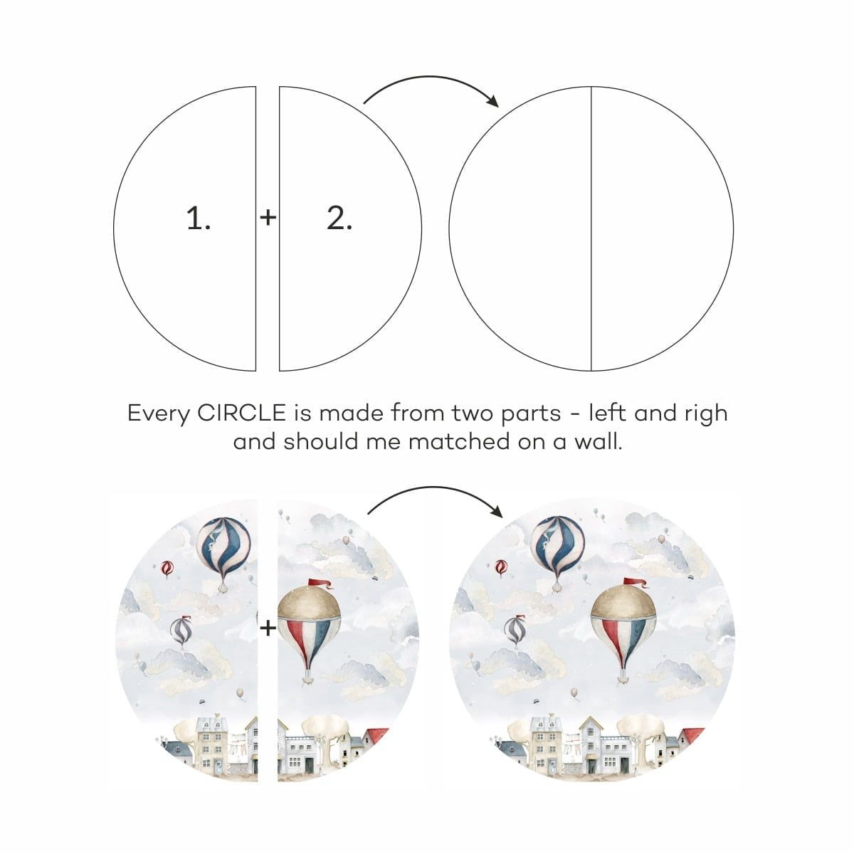 En underbar veggdekorasjon i form av luftballonger i en sirkel. Dette er en fantastisk måte å innrede barnerommet ditt på, da den passer både ved sengen, ved skrivebordet eller på en tom helvegg i stedet for tapet. \n \nVeggklistremerker er utformet for å se underfull ut på både lyse og mørke vegger og har en fin struktur som knapt er merkbar. Materialet er spesielt utvalgt for å være sterkt og gi en perfekt farggjengivelse. \n \nMål: Finnes i to størrelser \n