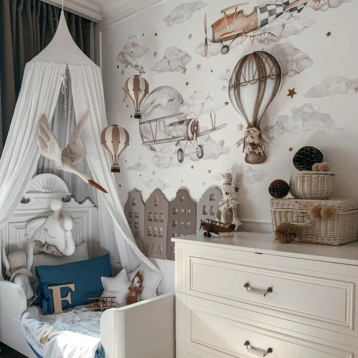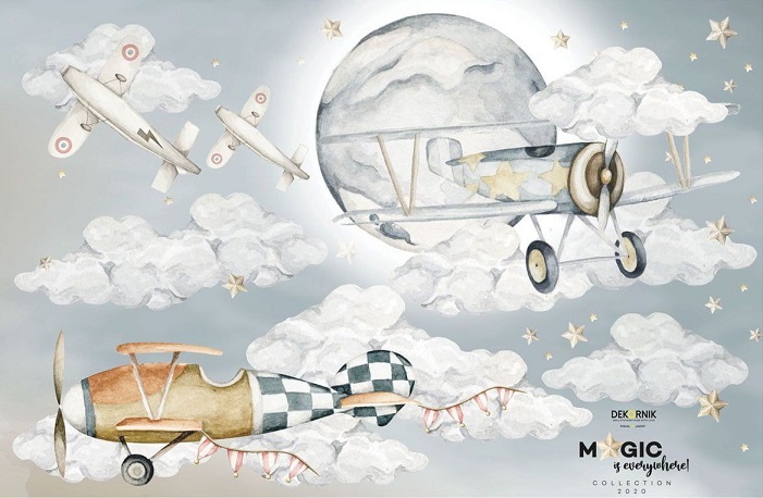 En underbar veggdekorasjon i form av fire fly med skyer fra den nye kolleksjonen “Magic is everywhere”.  Dette er en fantastisk måte å innrede barnerommet ditt på, da den passer både ved sengen, ved skrivebordet eller på en tom helvegg i stedet for tapet.