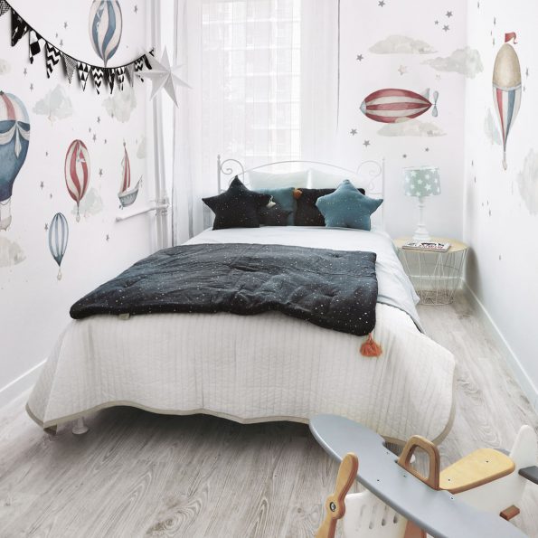 En underbar veggdekorasjon i form av fine luftballonger. Dette er en fantastisk måte å innrede barnerommet ditt på, da den passer både ved sengen, ved skrivebordet eller på en tom helvegg i stedet for tapet. \n \nVeggklistremerke er utformet for å se underbare ut på både lyse og mørke vegger og har en fin struktur som knapt er merkbar. Materialet er spesielt utvalt for å være sterkt og gi en perfekt fargegjengivelse. \n \nMål: Finnes i to størrelser: \n