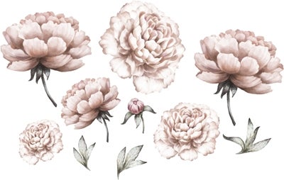 Superfine rosa peoner fra danske That’s Mine. Disse veggklistremerker er laget av høykvalitets tekstilmateriale som gjør at klistremerker enkelt kan festes og flyttes rundt på veggen.