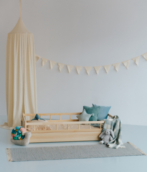 Garderoben består av en klestang, tre store skuffer og en bunnhylle. Barnet vil få en følelse av å gå inn i sitt kleshus og selv velge dagens antrekk eller hvorfor ikke bruke garderoben som oppbevaring av barnets favorittleker?