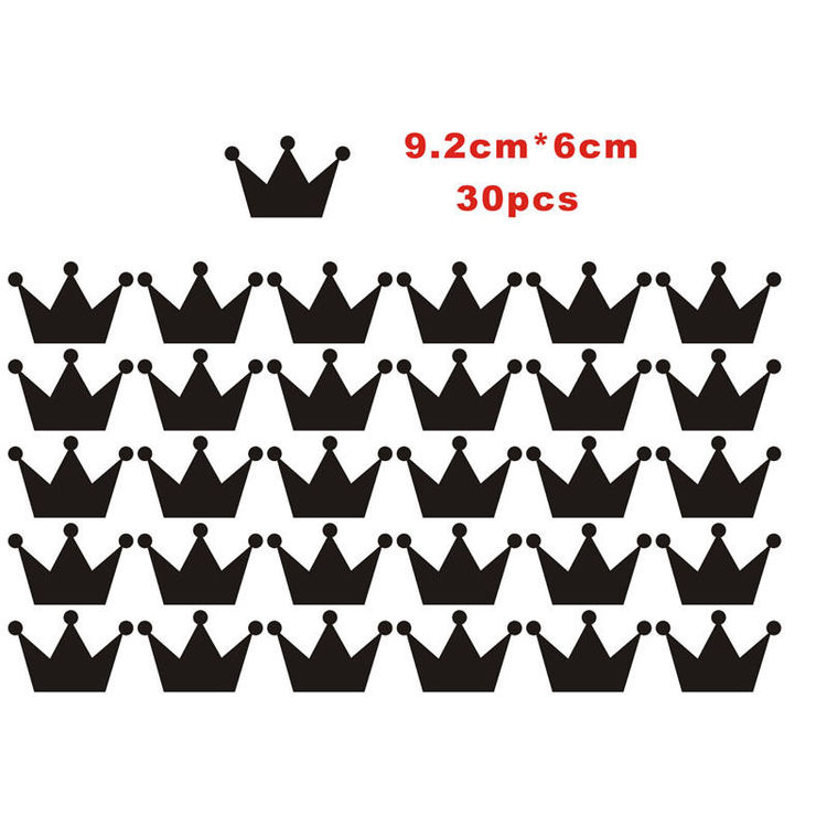 Størrelse: hver prinsessekrone 9 cm x 6 cm , totalt 30 stk.