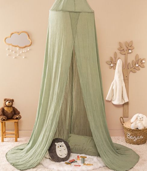 Du kan enkelt forvandle sengen til en deilig soveplass eller et morsomt kosekrok. Dessuten kan du selvfølgelig flytte rundt på sengehimmelen og henge den midt i rommet eller i et hjørne, for å skape koselige og lekne steder i barnerommet. Uansett hvordan du bruker den vil den gi barnerommet en deilig innramming og utgjøre en fin innredningsdetalj. Kombiner gjerne med matchende vimpler, puter eller fine oppbevaringskurver for beste resultat.