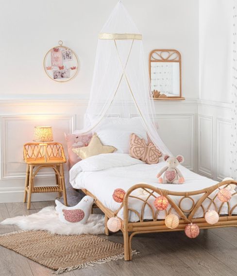 Du henger den enkelt på veggen, eller på tvers over sengen. Hvorfor ikke kombinere med et fint lektelt eller en vakker sengehimmel i samme design. Med denne lange vimpelen kommer du raskt og enkelt til å forvandle barnerommet ditt til et mer levende og vakkert sted.