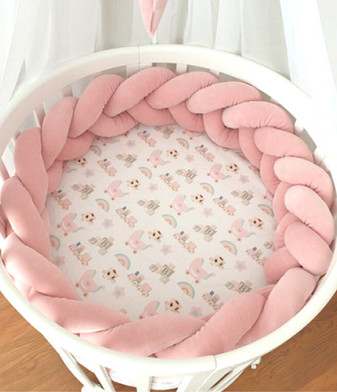 Sprinkelvernet festes med søte fiskebeinsbånd og er egnet for vogger, sprinkelsenger og barnesenger med støttebrett med sprinkel.