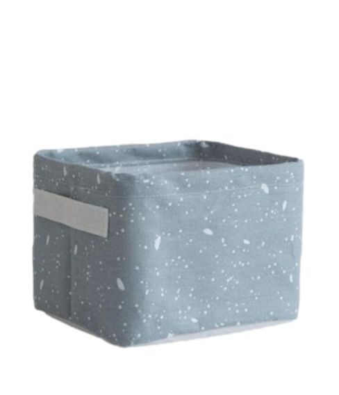 Søt og praktisk liten oppbevaringskurv som vil hjelpe deg å holde orden samtidig som du skaper en vakker barneroms-innredning. De to håndtakene på sidene gjør den enkel å flytte når du vil. Mål: 14 cm x 20 cm x 15,5 cm Materiale: Bomull