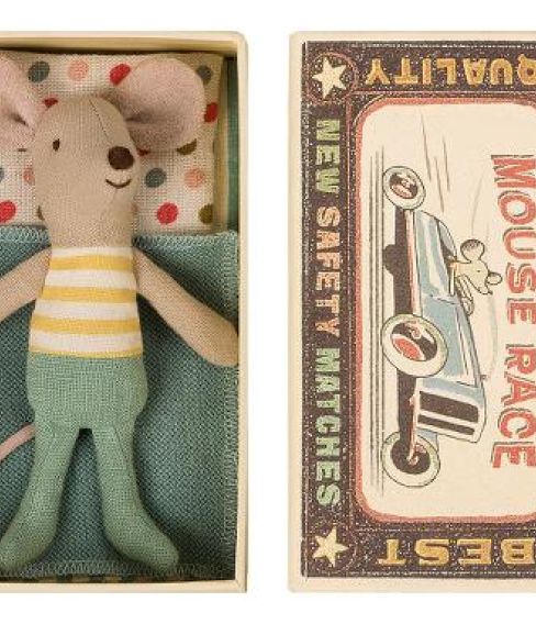 Et lite garderobe som hjelper musefamilien med å holde orden på garderoben sin. Garderobet leveres med tre gyllene bøyler. Utrolig detaljrikt produkt som er helt håndlaget av det populære selskapet Maileg. \n \n \nHøyde: 14 cm Bredde: 7 cm Dybde: 4 cm Vekt: 160 gram \nAnbefalt alder: Fra 3 år Materiale: Tre \nDesigner: Maileg