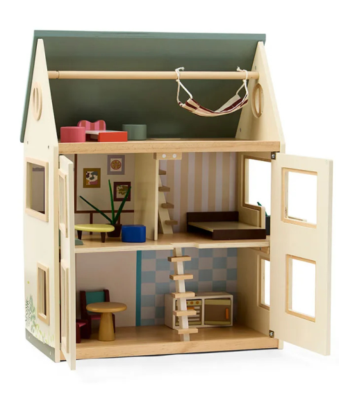 Møbelsettet består av en byggbar sofa med to små sitteputere. Barnesofaen kan foldes ut for å lage en seng når barnet ditt vil ta en lur eller har venner på besøk.