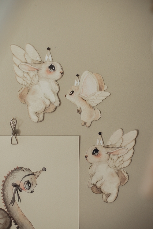 Et fantastisk motiv som du har mulighet til å innrede barnerommet ditt med for å skape et herlig og vakkert miljø. Vi garanterer at du kommer til å ha mye glede og fornøyelse med disse. \n \nDu monterer dem enkelt hver for seg og kan enkelt flytte rundt på dem for å finne nye motiver og utseende. Klistremerkene kan gjenbrukes mange ganger. \n \nMål: Cirka 20 cm. \n \nMaterial: Polypropen. Papirråvaren kommer fra FSC- og PEFC-sertifiserte kilder, miljøvennlig vannbasert lim og PVC-fritt. \n \nProdusert i Sverige. \n \nDesigner: Mrs Mighetto \n \nObs! Klistremerkene er ikke egnet for vegger med grov overflate. Kontroller at veggen er ren og glatt før du påfører klistremerket.