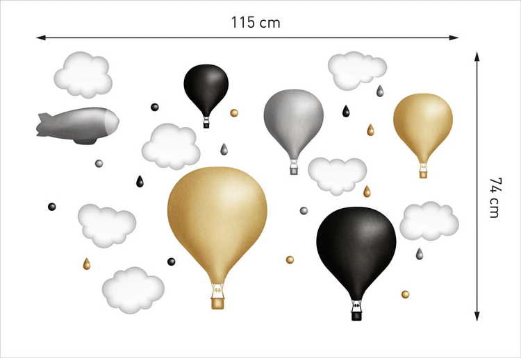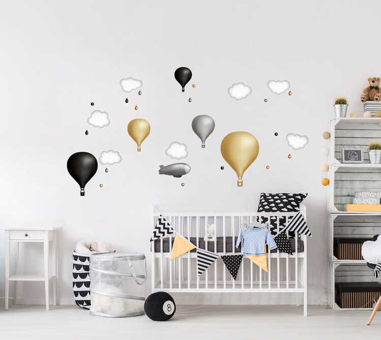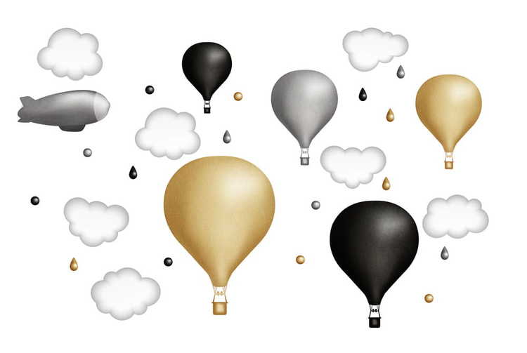 Et vakkert sett med veggklistremerker i form av vakre luftballonger, skyer og dråper.