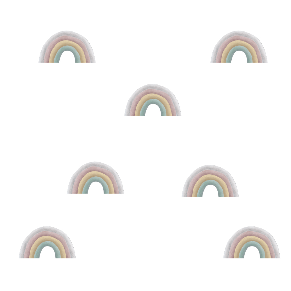 Eventyrlige veggklistremerker fra svenske Stickstay. Disse veggklistremerkene fra Stickstay er helt flyttbare (noe som gjør at du kan la kreativiteten flyte) og passer på både malte vegger og malte eller tykke tapeter. Dette er wallstickers av høyeste kvalitet. De har en holdbarhet som normalt er meget lang og de er dessuten resirkulerbare. \n \nMål: 7 cm brede. Totalt følger det med 7 stk regnbuer. \n \nFarger: lysgrå, lysrosa, lysgull, mint \n \nMateriale: Vinylplast (Resirkulerbar selvfølgelig) \n \nProdusert i Sverige og håndskissert design av Lisa Flodmark. \n \nDesigner: Stickstay