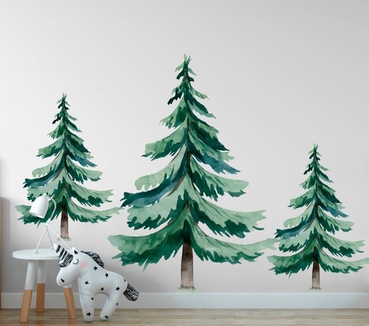 En vakker veggklistremerke i form av et grantre \n \nMed disse kan du dekorere barnets rom med forskjellige dyr og skape masse lek! \n \nVeggklistremerker i et barnerom er en enkel måte å dekorere for eksempel din favorittmyskrok eller et kjedelig område ved siden av en seng eller et skrivebord. \n