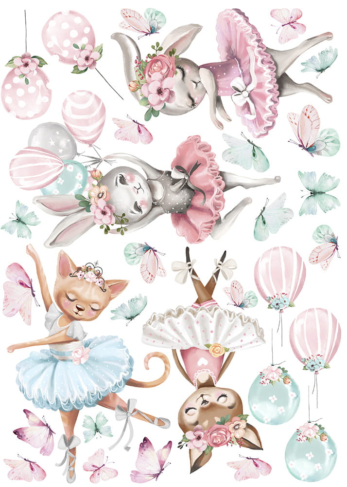 Et eventyrlig sett med veggklistremerker med søte dansende ballerinaer!