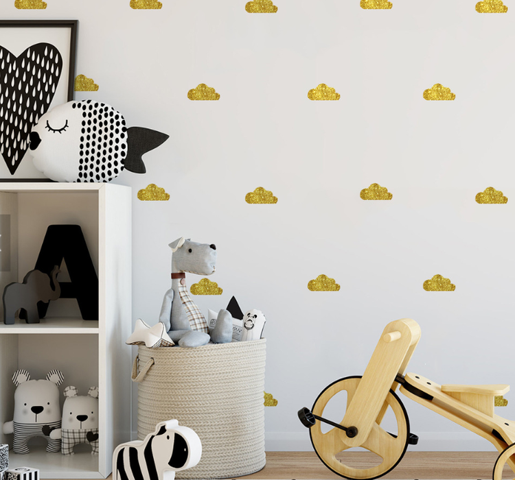 Veggklistremerker små gullskyer, sett med 28 stykker