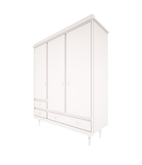 En riktig drøm for barnerommet, det er kommode BASIC med praktiske hyller på sidene. Man velger selv og monterer hyllene på ønsket side. Skapet er så vakkert at det også passer inn i foreldrenes soverom. Garderoben er helt bygget for hånd av MDF og det følger med masse sjarm og fine detaljer. En fantastisk møbel til barnerommet med flere fine detaljer og rikelig med plass for klær og oppbevaring.