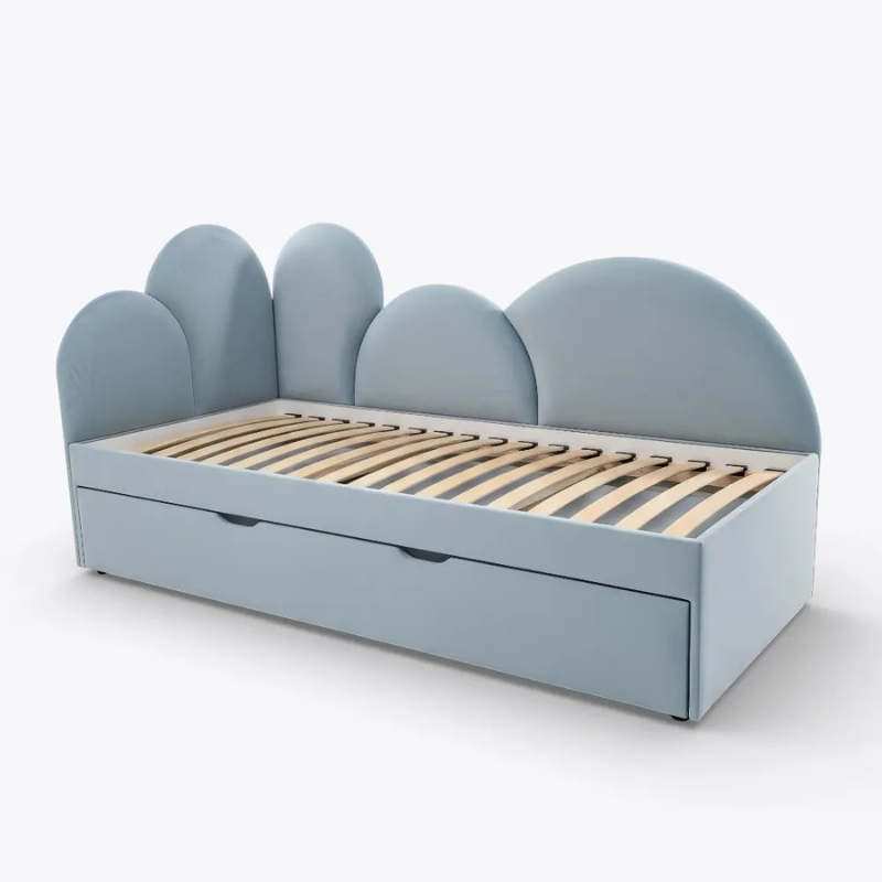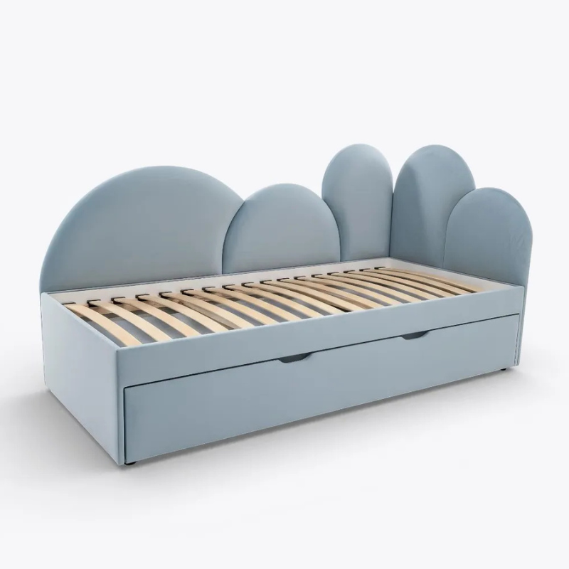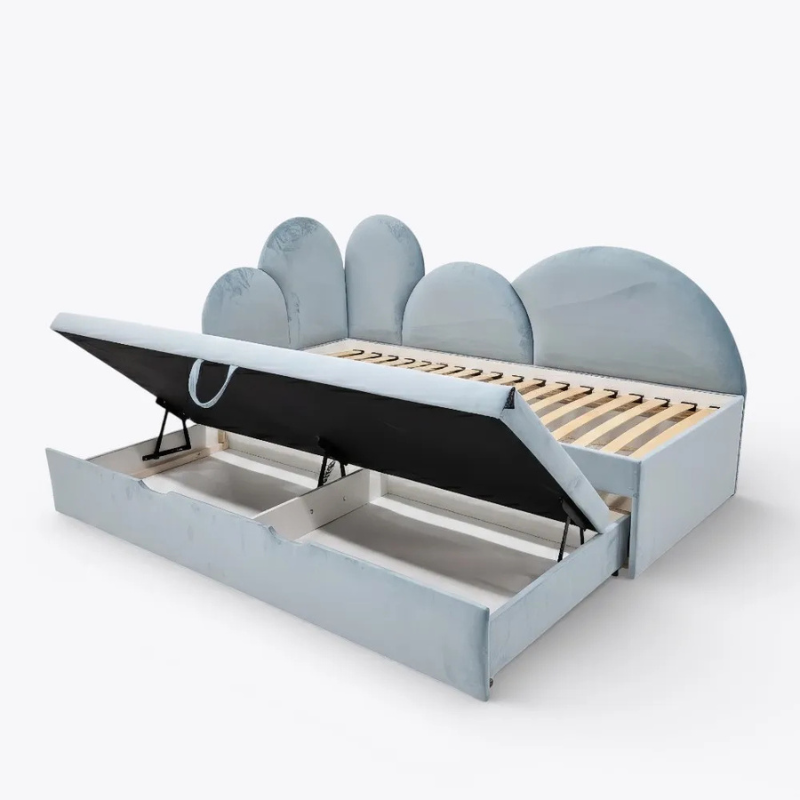 Agnes ljusblå utdragssäng 90×180 cm med förvaring