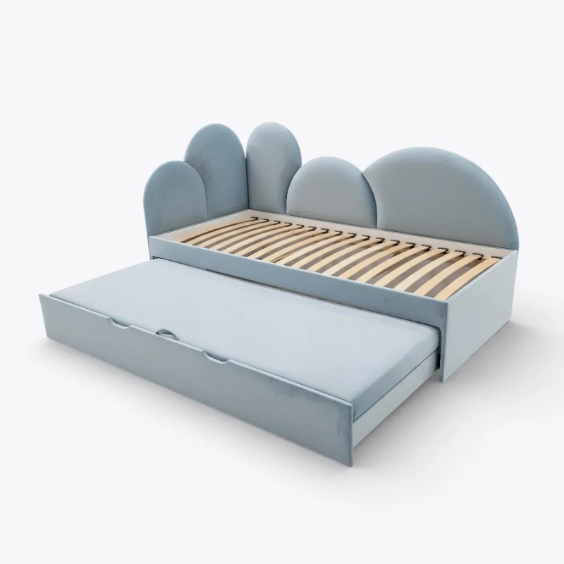 Den utdragbara underbädden gör att sängen enkelt kan förvandlas till en sovplats för två barn, utan att ta upp extra golvyta i barnrummet. På dagen skjuts extrasängen smidigt in under huvudbädden, vilket gör Jessa utdragssäng till en optimal lösning för mindre rum där funktion och platsbesparing är viktigt.