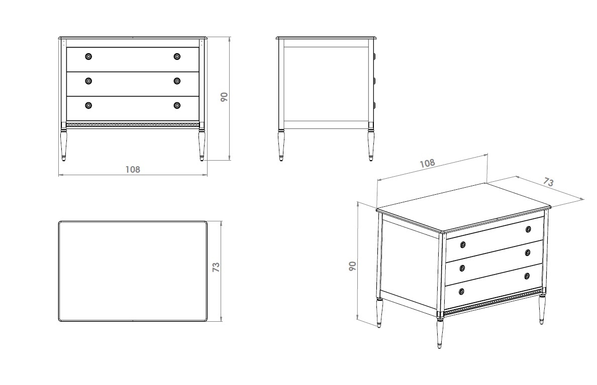 En otroligt lyxig byrå i gustaviansk stil till barnrummet! De vackra dekorativa detaljerna skapar en extra charm och kommer att lyfta din barnrumsinredning till himmelska höjder. Byrån har tre rymliga lådor där barnet kan förvara sina kläder, spel eller böcker. Finns i tre klassiska färger: natur, vit och grön.Mått: Längd 101 cm. Bredd 73 cm. Höjd 90 cm.Material: Byrå: björk…