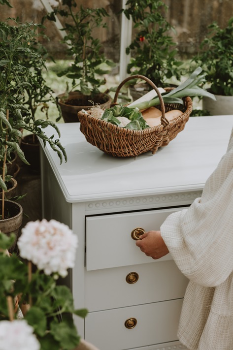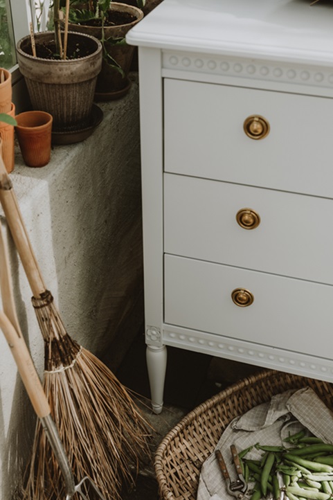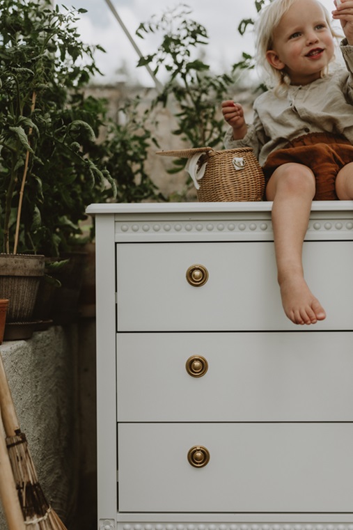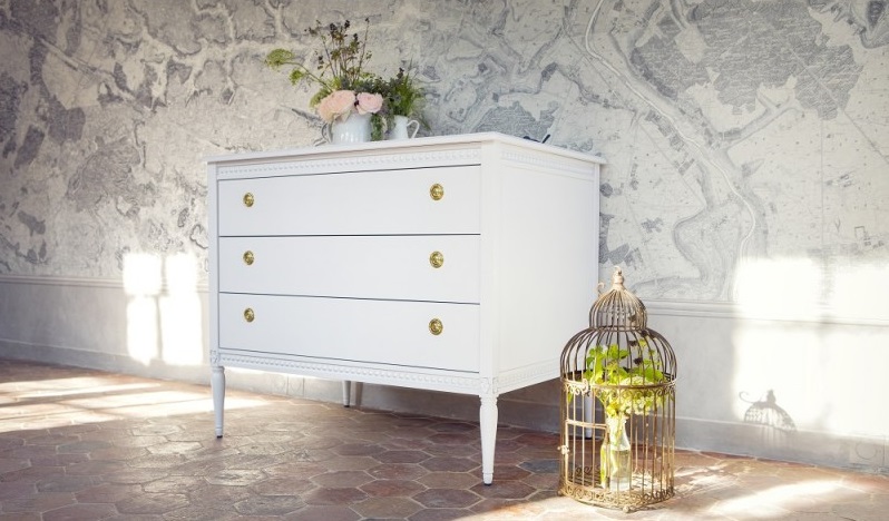 Antik byrå med tre lådor till barnrummet, vit