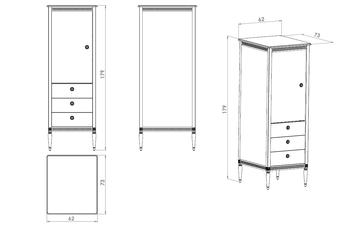 Mått: Höjd 180 cm. Bredd 63 cm. Djup 73 cm.