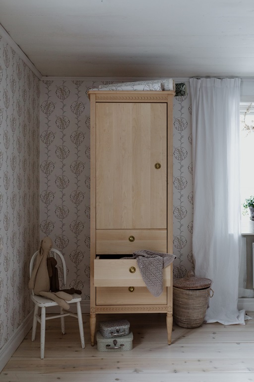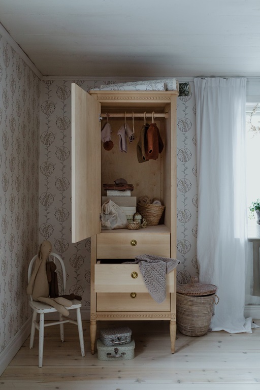 Antik garderob till barnrummet, natur