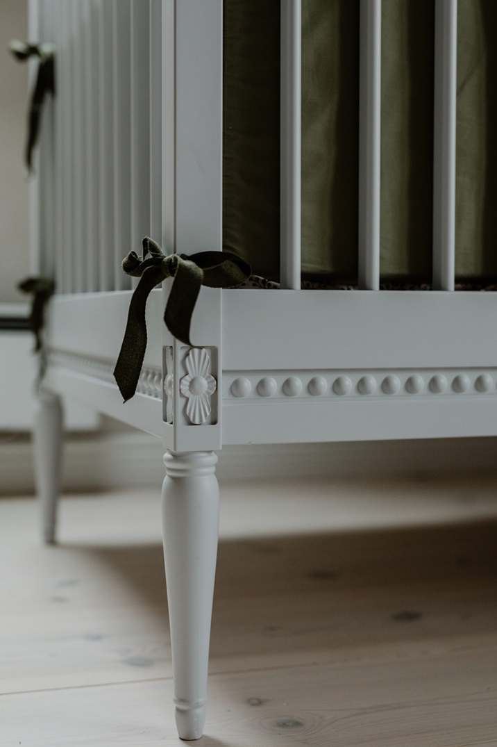 En otroligt lyxig babysäng med madrass i gustaviansk stil till barnrummet!