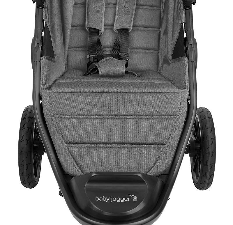 Barnet kommer att sitta skönt då sittdelen är rymlig, ryggstödet kan regleras och vagnen är utrustad med ett inbyggt fotstöd och en praktisk fempunktssele. De rejäla gummihjulen ger både mamman och barnet en smidig åkkänsla. Framhjulet kan låsas vid tuffare terräng.