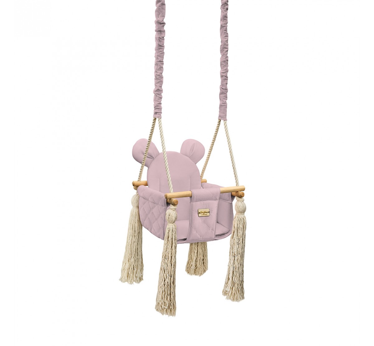 Gjord av tjockt tyg, med en vadderad mjuk madrass i form av en söt björn. Gungan är gjord i rejält material och i naturliga färger, så den är vacker men samtidigt bastant.