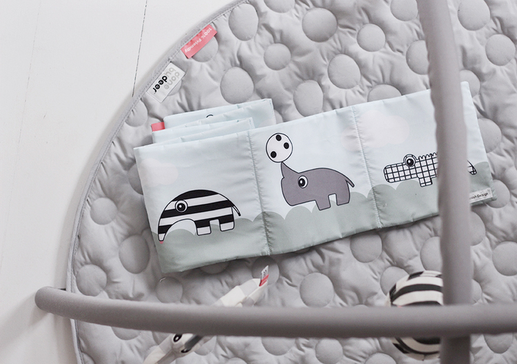 Crocko knastrar vid beröring, Elphee skallrar, den lilla spegeln skrattar alltid tillbaka och ballongerna har bjällror – allt för att stimulera ditt barns olika sinnen. Valvbågarna fäster man enkelt med kardborrband på filten och kan lika enkelt tas bort om man vill använta filten separat.