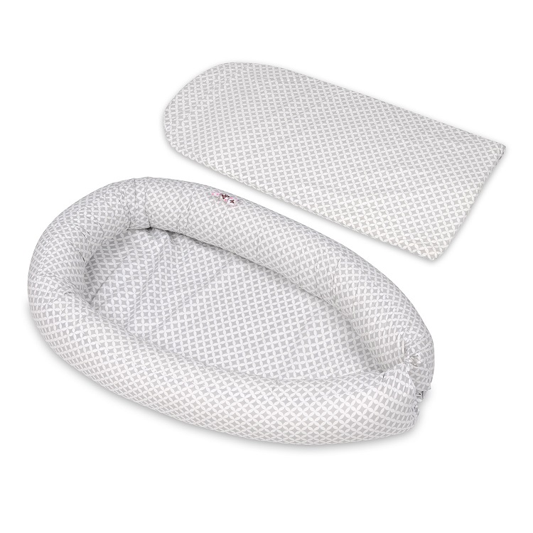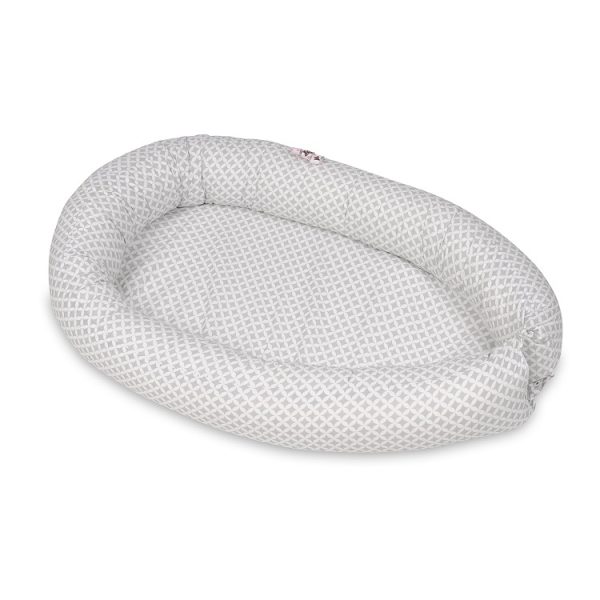 Mysigt vit/grå babynest i ett rutmönster. Nestet fungerar både som säng och skötbädd och passar perfekt att ta med sig på resan. En supermjuk fyllning gör att din baby ligger tryggt och bekvämt. Babynest öppnas och stängs enkelt med hjälp av knytsnören och kan även användas som en insats i spjälsängen eller barnvagnen.