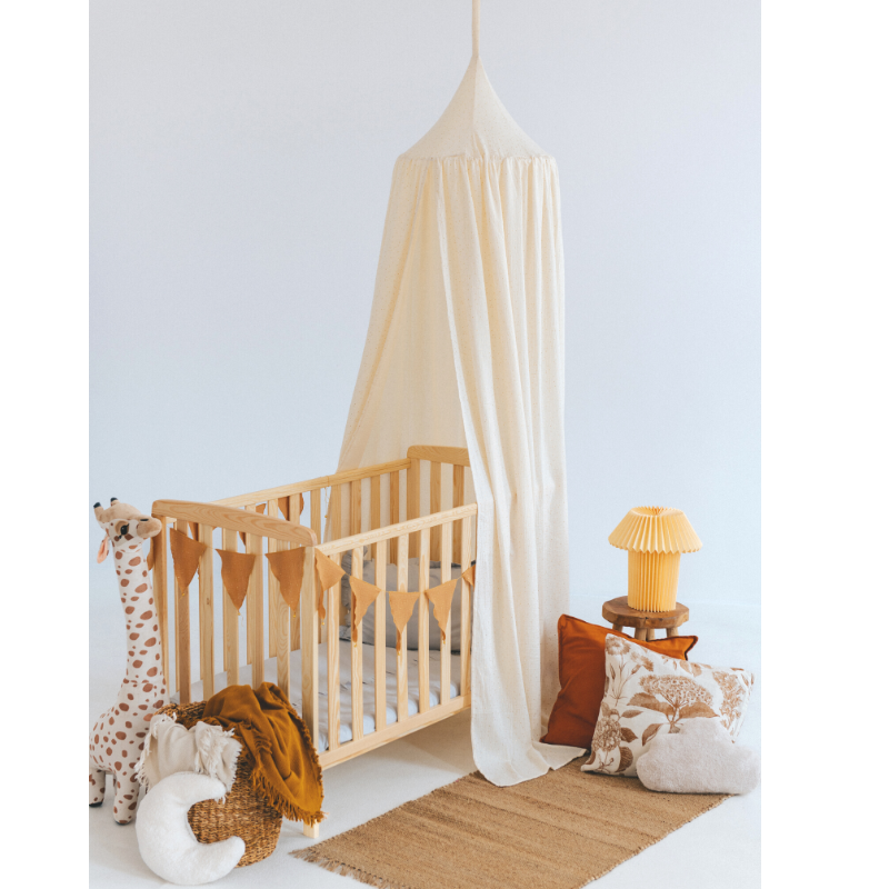 Babylove, Écru sänghimmel i bomullsmuslin med ljusslinga