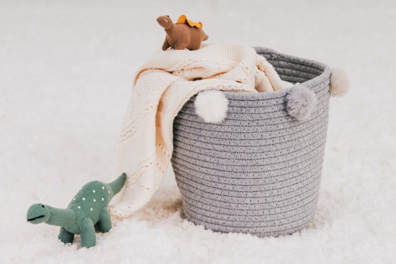 Superfin och praktisk grå förvaringskorg . Smart förvaring till barnets leksaker som passar i alla rum.