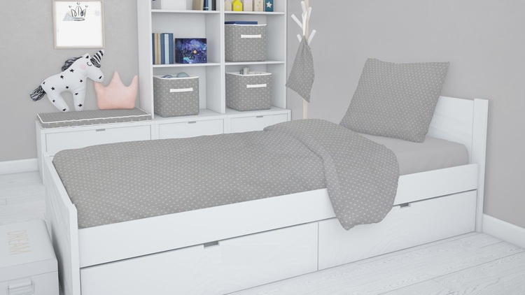 Ett smart och elegant mörkgrå påslakanset anpassat till juniorsängar och växasängar. Tyget är gjort av OEKO-Tex bomull och är tillverkad i Europa med hänsyn till alla säkerhetsföreskrifter och regler, allt för barnets komfort utan att tulla på säkerheten. Ett superbra lakan helt enkelt.
