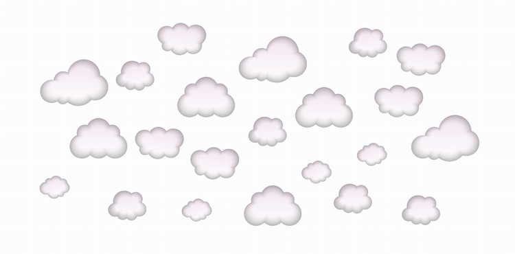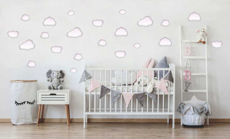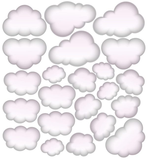 Mått: Varje moln cirka 10-12 cm x 8-12 cm. Setet innehåller 22 väggklistermärken.