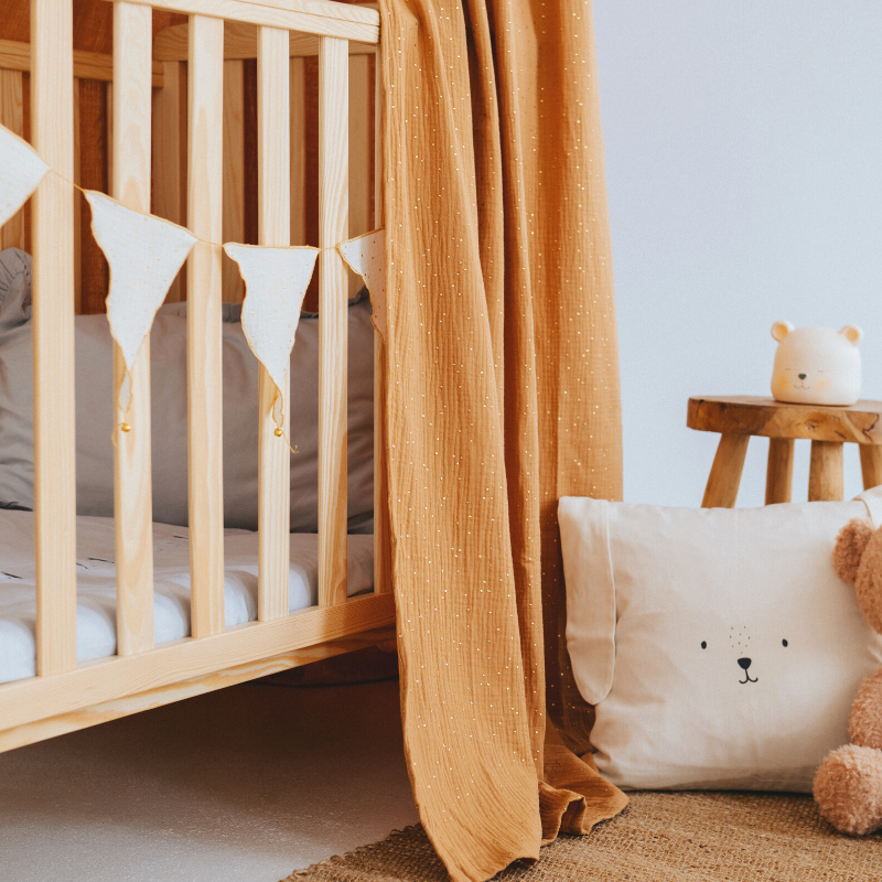 Babylove, Senapsgul sänghimmel i bomullsmuslin med ljusslinga