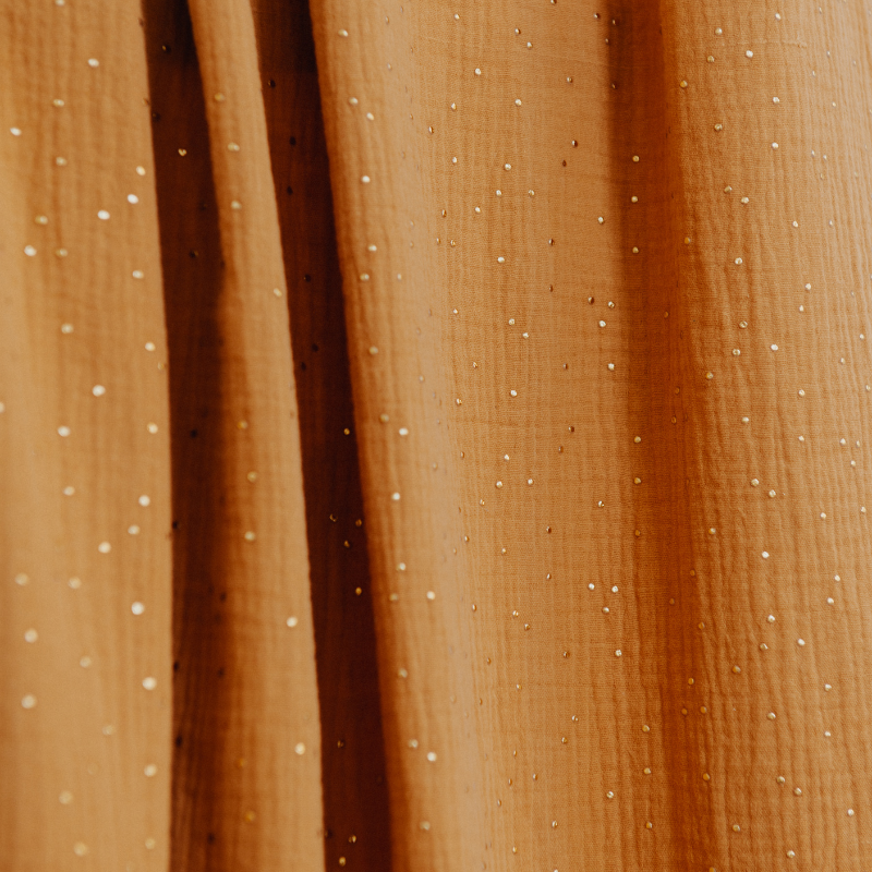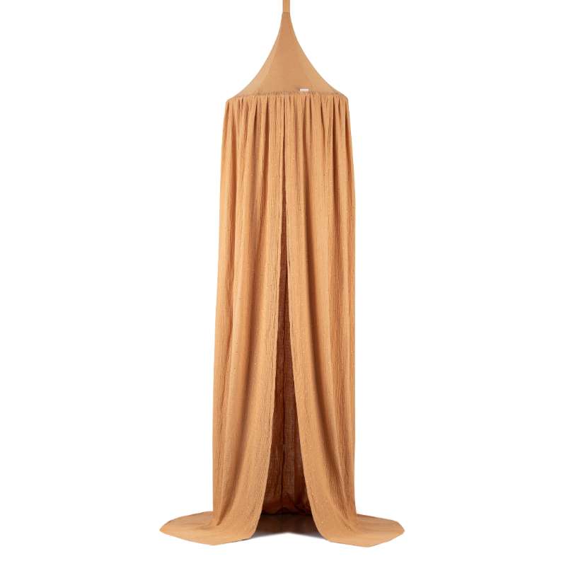 En underbar sänghimmel med guldiga prickar i mjuk bomullsmuslin från egna och unika kollektion gjord av högsta kvalitet. Tillverkad i vår egna fabrik i Europa, och vi har samlat alla våra kunskaper kring sänghimlar för att skapa den mest prisvärda kvalitetsprodukten på marknaden.