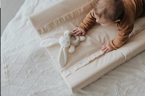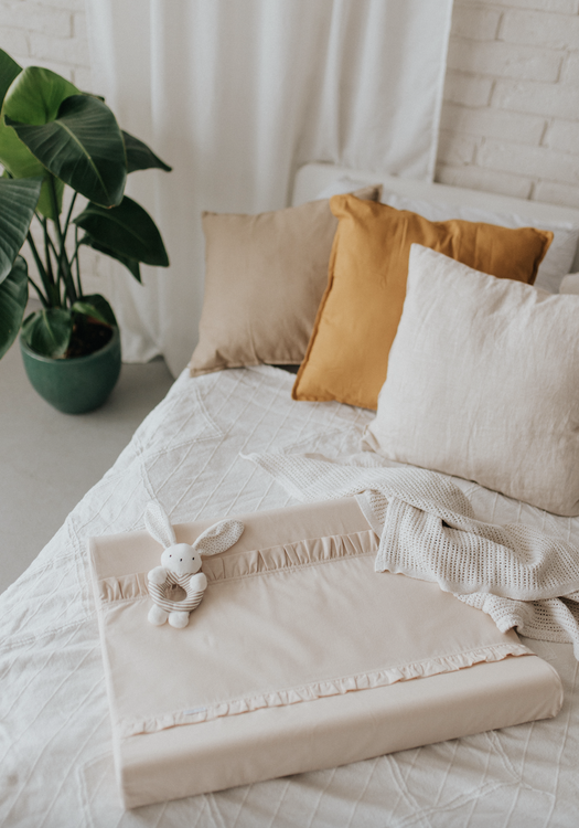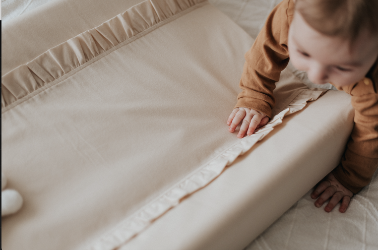 Varför inte snygga till ditt skötbord så att den blir något utöver det vanliga? Med detta fina skötbädd med fina volanger, kommer det inte bara se vacker ut, utan även vara mycket mjukt och skönt för det lilla barnet att ligga på. Överdraget är avtagbart och tillverkat av OEKO-tex certifierad bomull som även gör att det är mycket enkelt att tvätta i 30 grader.
