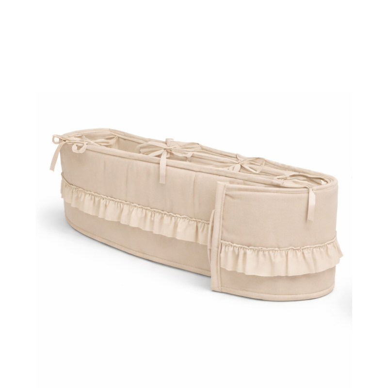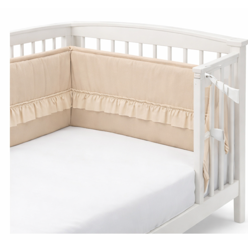Skapa en trygg och ombonad sovmiljö i barnets säng med vårt mjukt vadderade spjälsängsskydd i 100% bomull. Den dekorativa volangen ger sängen ett stilrent och ombonat uttryck samtidigt som skyddet minskar risken för att barnet slår i sängens spjälor.
