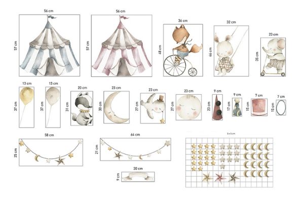 En sagolik uppsättning väggklistermärken med cirkustema!